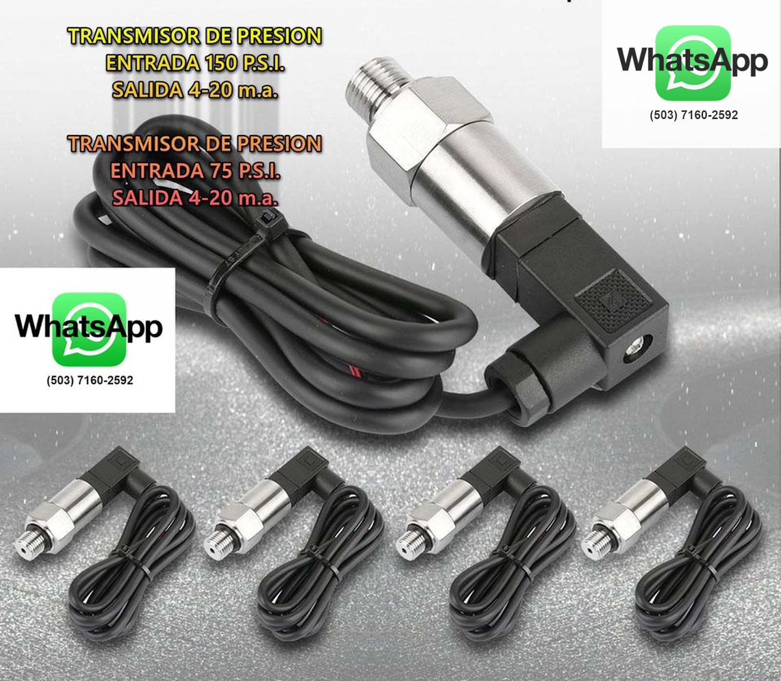 Transmisor de presión de rosca 1/4 inCH Entrada 150 y 75 P.S.I ,Salida 4-20mA Sensor transductor . 19:04 IA Enviar por correo electrónicoEscribe un blogCompartir en XCompartir con Facebook